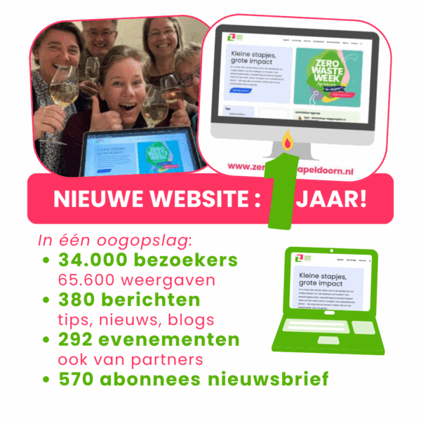 In mei barst het pas écht los! Van restjes redden tot ruilen en repareren: tijdens de Zero Waste Week a.s. ontdekken inwoners van de gemeente Apeldoorn hoe kleine stappen grote impact maken. Deze inspirerende week vol duurzame activiteiten vindt plaats van 17 t/m 23 mei 2025 en valt deels samen met de Week van de Biodiversiteit. Het thema dit jaar: Natuurlijk Afvalvrij! Nieuwsgierig? Check het programma in het Vooruitblik! 🌍💚