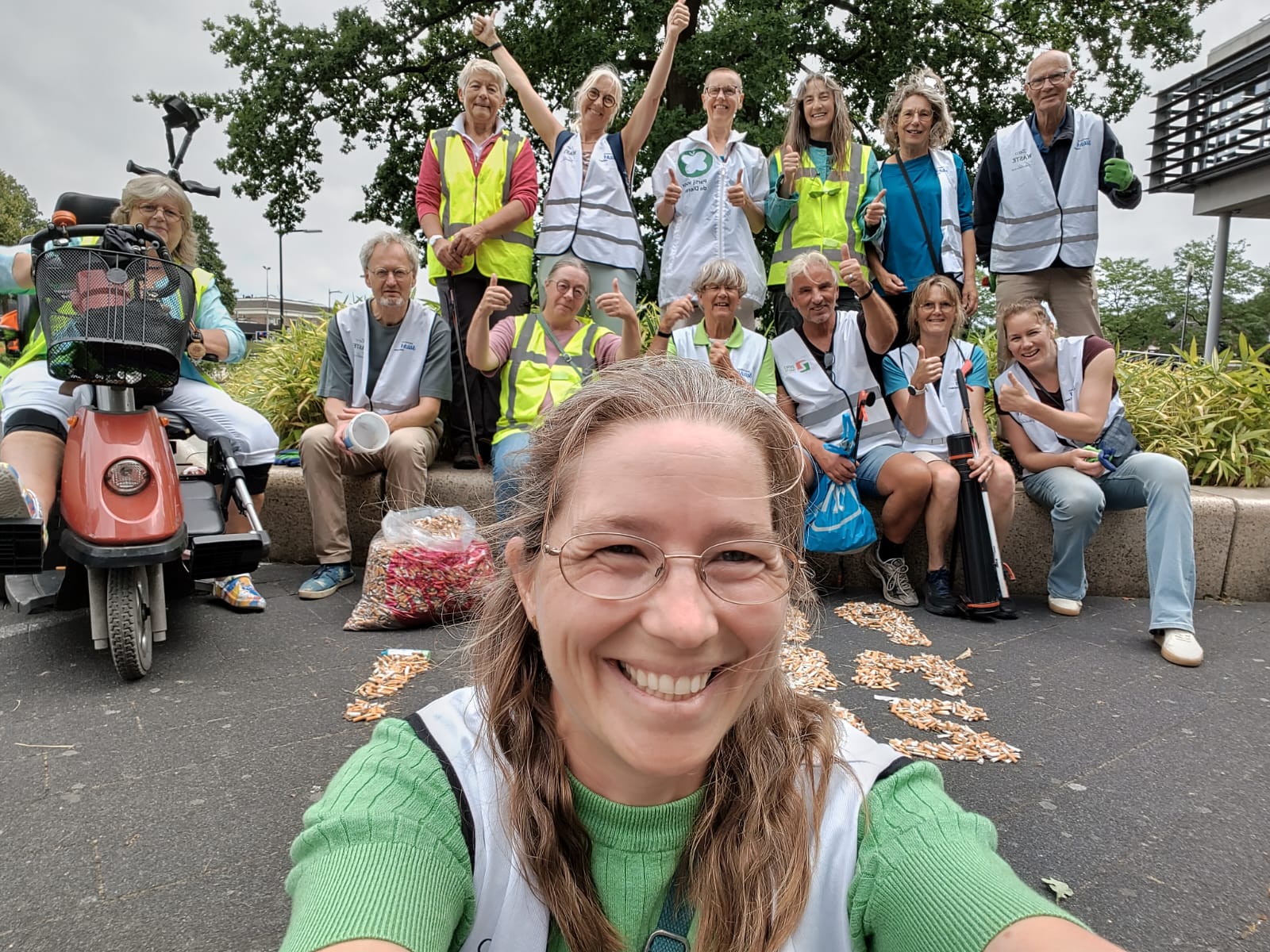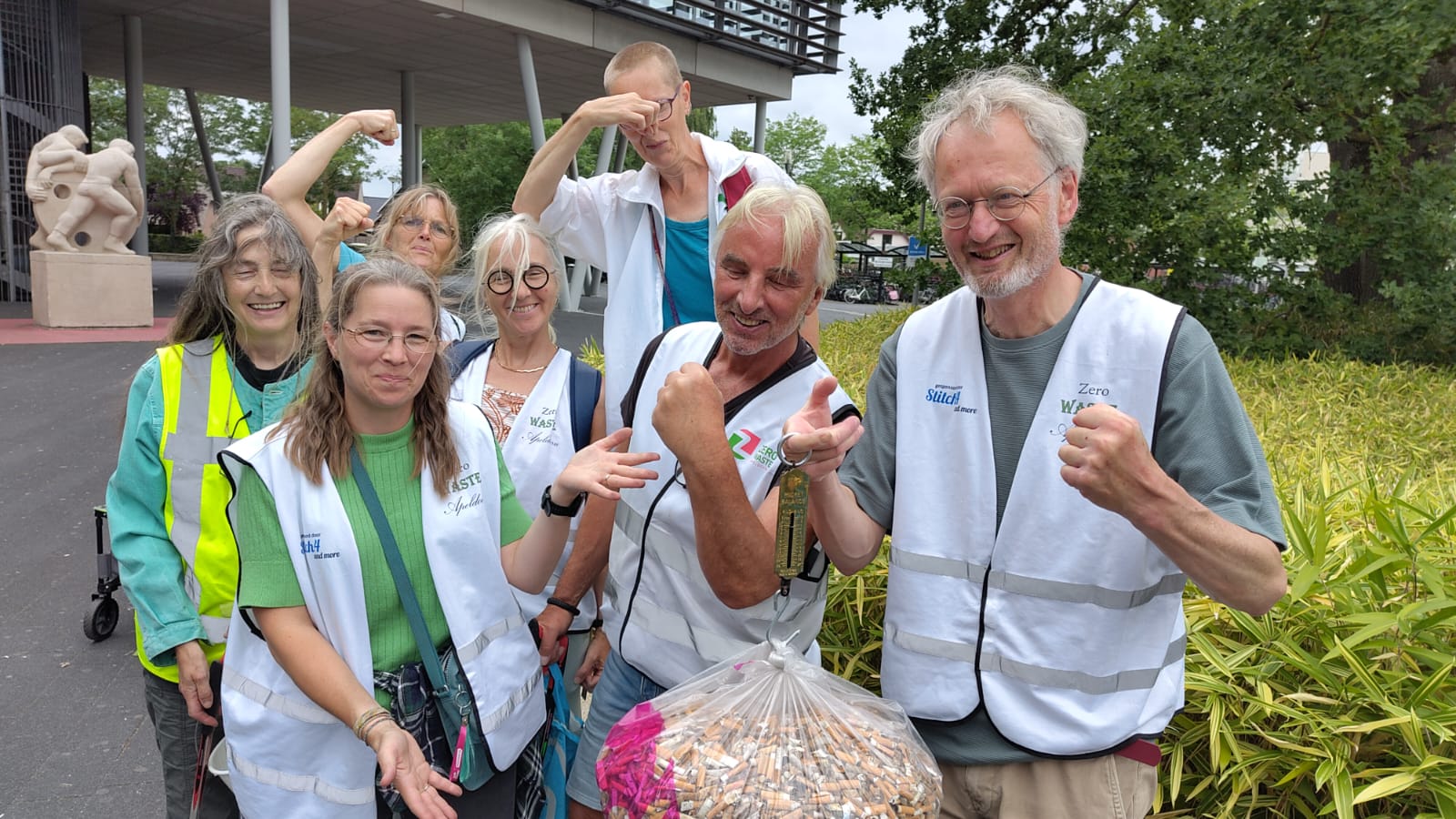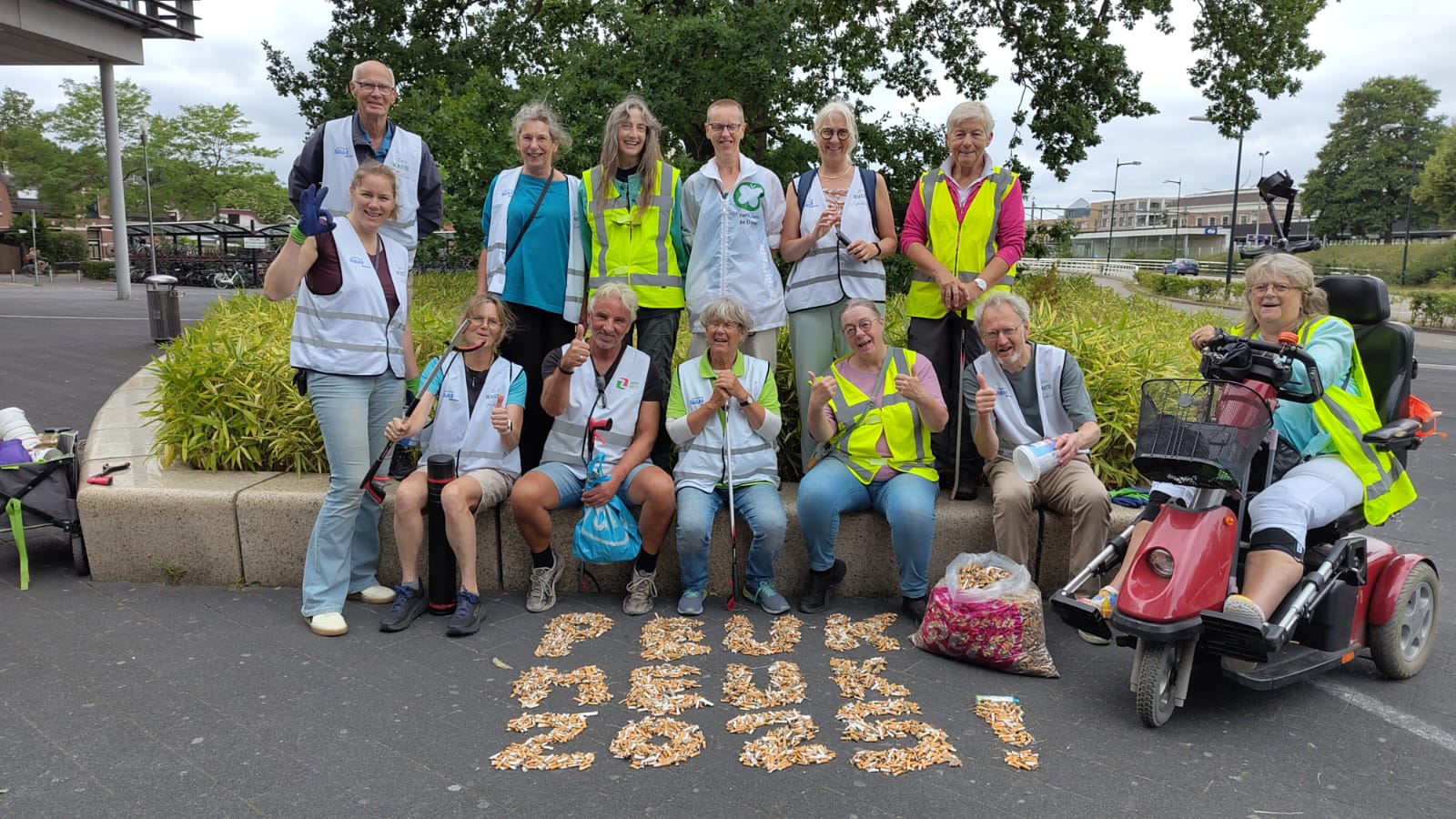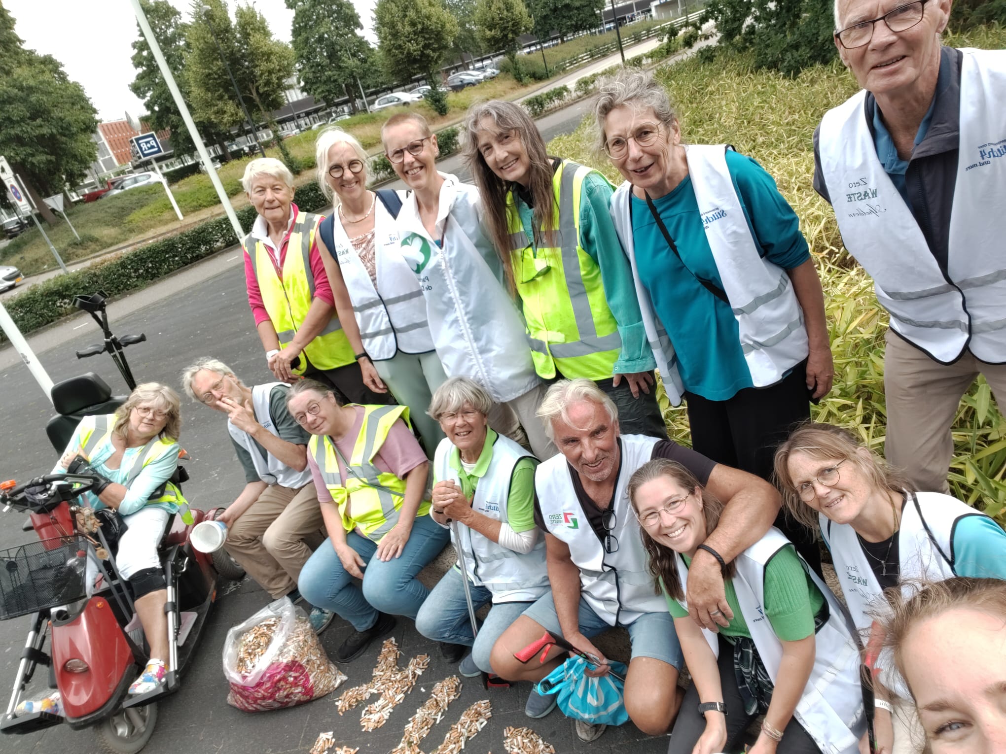 Een dikke dankjewel aan de 14 deelnemers, waaronder vrijwilligers van Stichting Zero Waste Apeldoorn, IVN Apeldoorn, Partij voor de Dieren en andere betrokken inwoners. Dankzij jullie inzet hebben we samen letterlijk tienduizenden plastic peuken van straat gehaald!