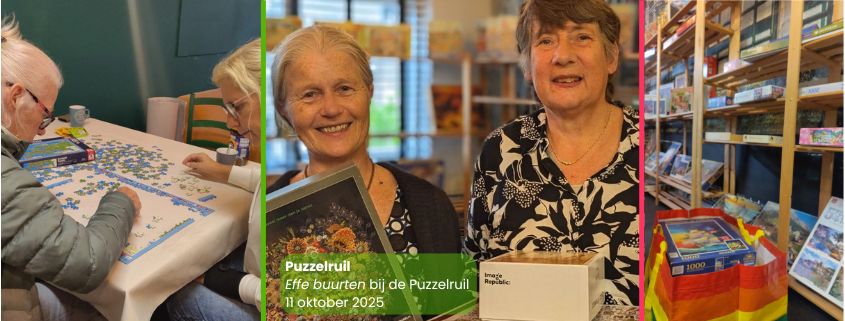 Op zaterdagochtend 11 oktober vond alweer het achtste puzzelruilmoment van dit jaar plaats bij de Zero Waste Apeldoorn Puzzelbank op Impact Plek. En wat een bijzondere editie was het: niet alleen vanwege het recordaantal ruilers, maar ook door het bezoek van een wel heel leuke gast!