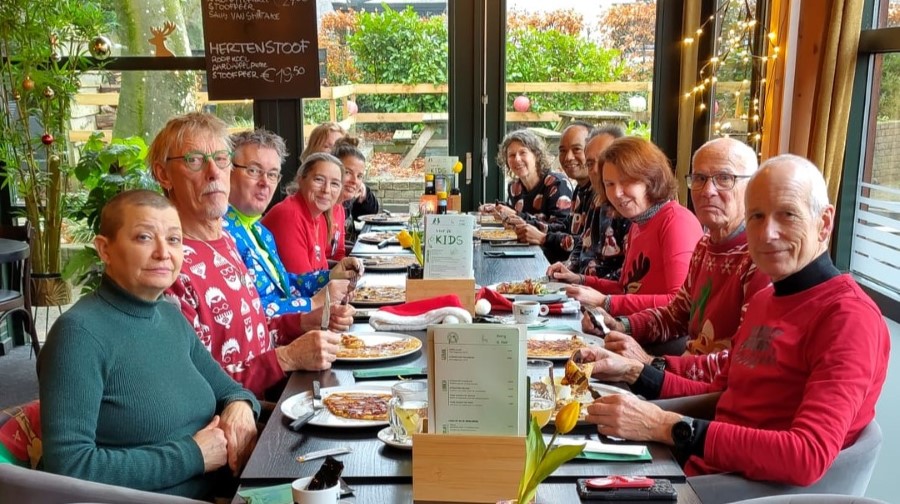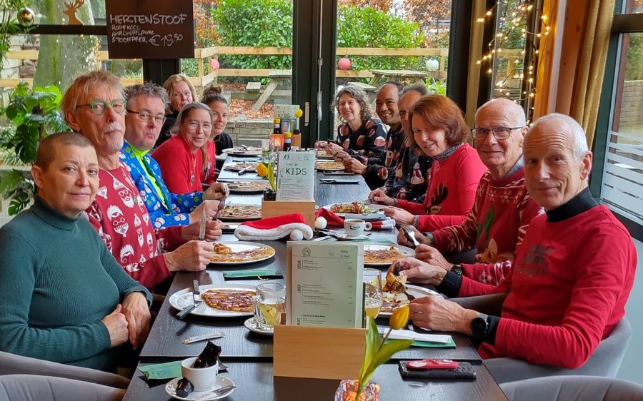Na het ploggen was het tijd voor het gezelligste deel van de kerstplog editie: samen aan tafel bij Pannenkoekenhuis Berg & Dal. Stichting Zero Waste Apeldoorn trakteerde de ploggers op een heerlijke gezamenlijke lunch, als dank en waardering voor hun tomeloze inzet het afgelopen jaar. Met warme koffie en thee, lekkere pannenkoeken en geanimeerde gesprekken werd het plogjaar feestelijk afgesloten.