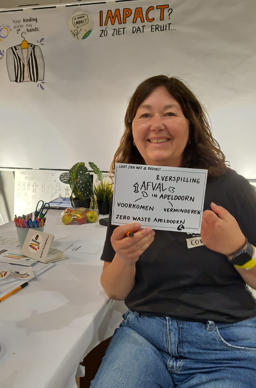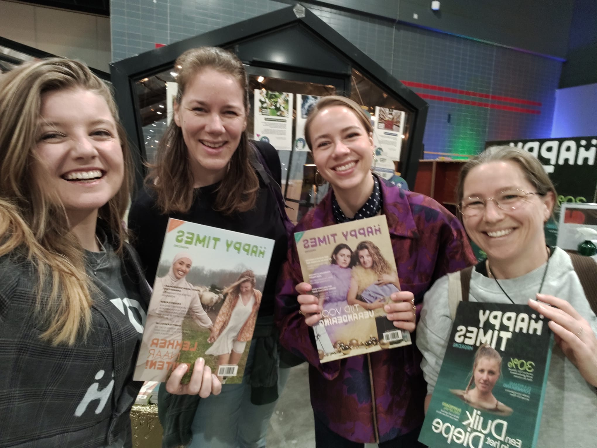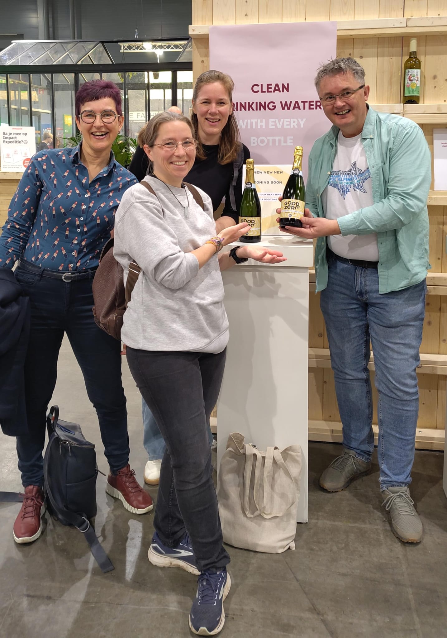 Tijdens ons rondje over de goed gevulde beursvloer kwamen we gezellige bekenden tegen. Op zich niet zo heel gek, want inmiddels weten we aardig goed wie in de ‘groene bubbel’ actief zijn. Zo was het fijn bijpraten met enthousiaste Anton Damen, oftewel de Plandelman. We liepen vrolijke Quinten van Duin tegen het lijf, die we nog kennen van de Plastic Get Together en die nu met zijn eigen Billiwild stond te pronken. En we spraken bij met gedreven Minke Terwel van Atelier Revive, die we in 2022 op ons eigen openingsfestival van de Zero Waste Week Apeldoorn hadden staan. Tot slot kwamen we al kletsende bij de The Good Wine (toeval? 😜) mede zero-waster en klimaatburgemeester uit het zuiden tegen: Vera Hoeksma. En hoewel Maartje Bregman ons niet kent, kennen wij haar en haar mooie Happy Times Magazine maar al te goed als trouwe abonnementhouders!