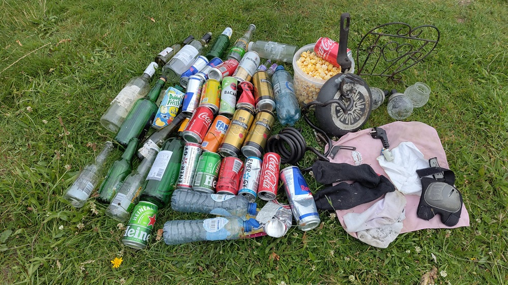 We vonden ook 27 blikjes en flesjes, goed voor €4,30 aan statiegeld. Dat klinkt misschien veel maar het is eigenlijk opmerkelijk vele malen minder dan voor het invoer van statiegeld op blikjes en flesjes. Dit systeem helpt écht enorm tegen zwerfafval.