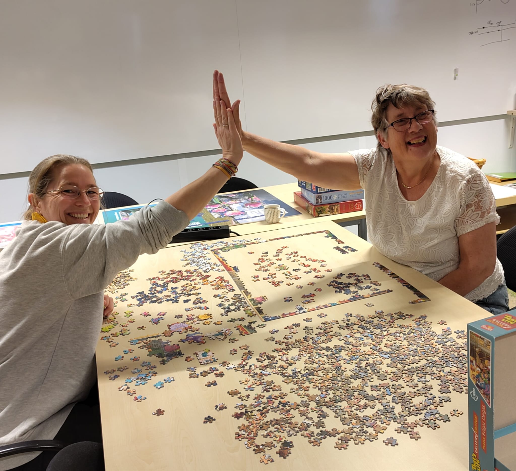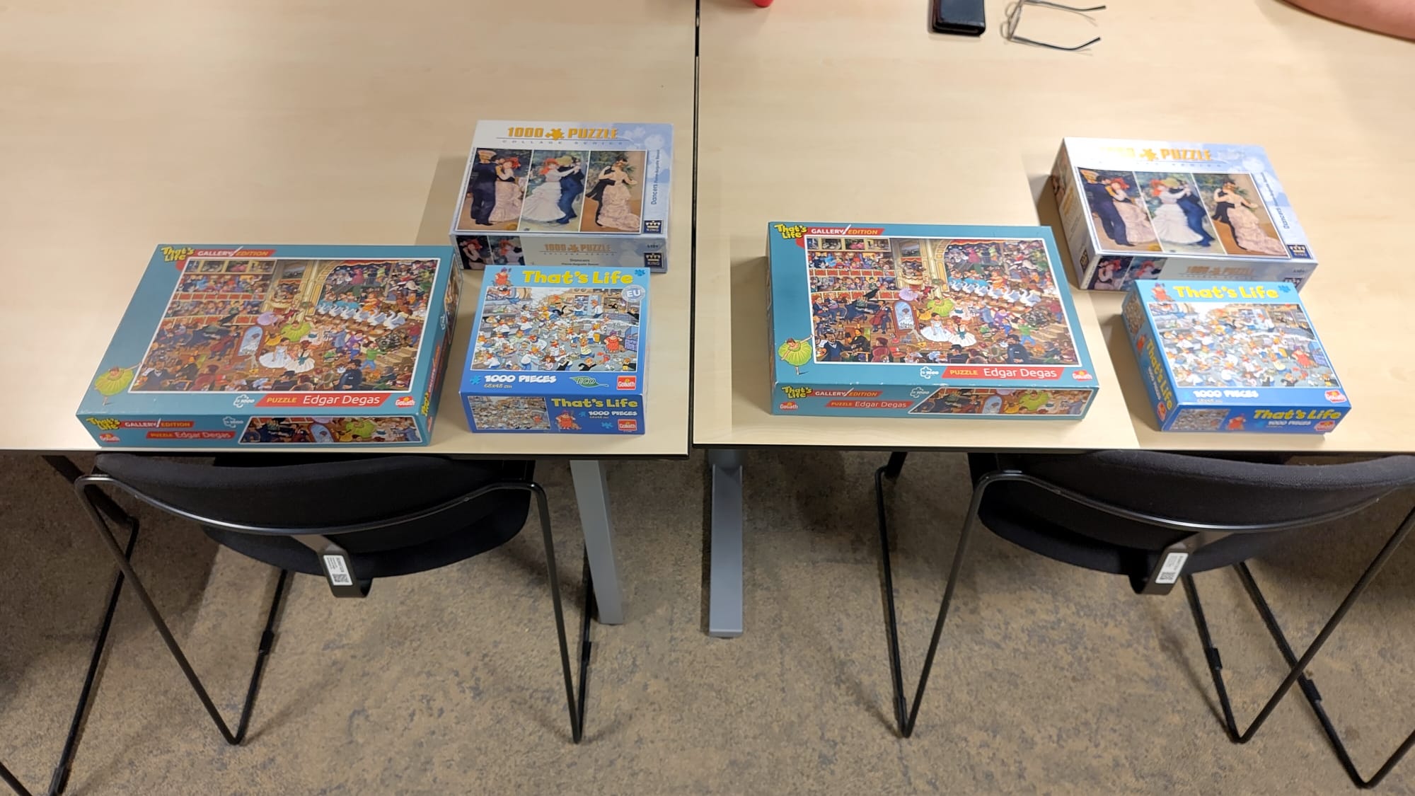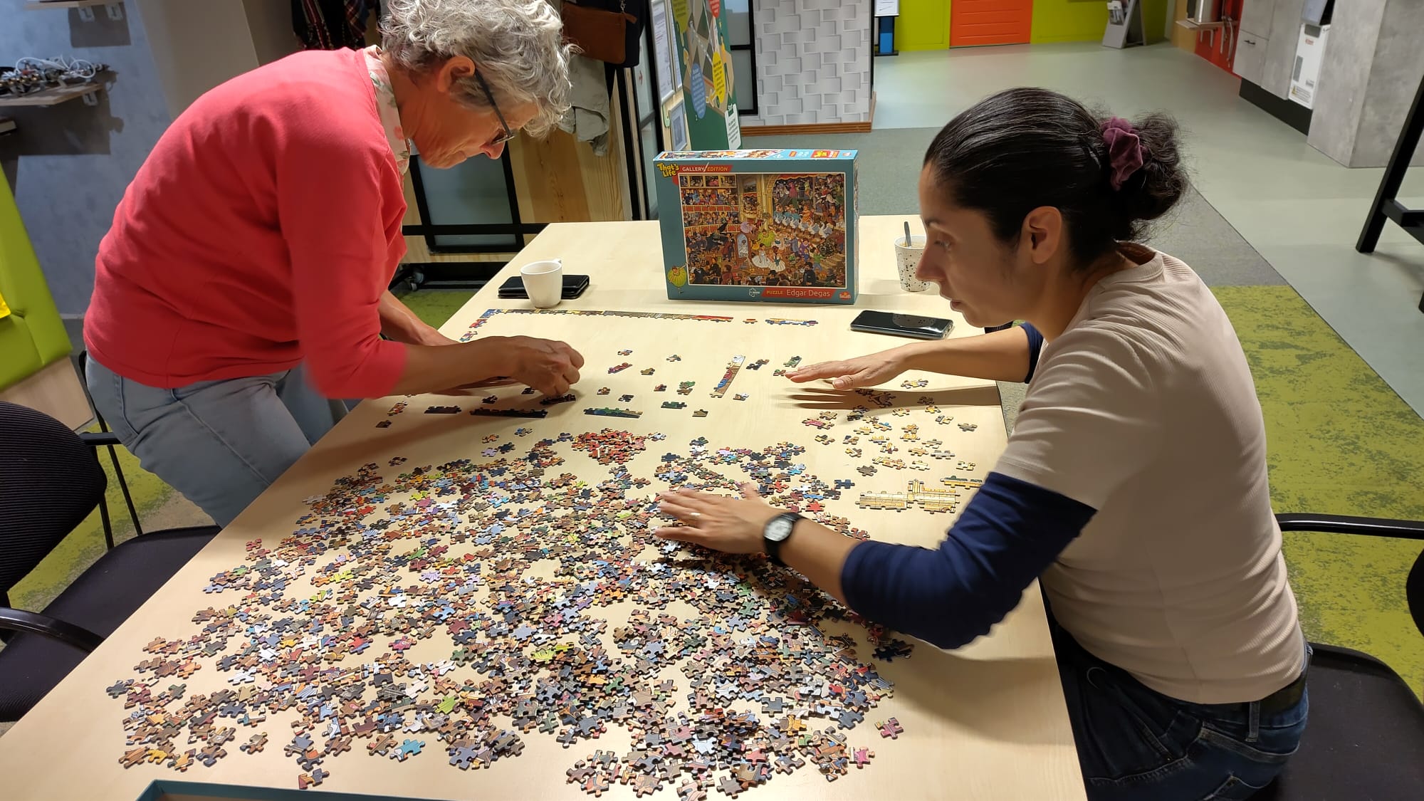 Team Marij & Rocio vs. Team Else & Tiphaine, met de ‘Edgar Degas’ puzzel.