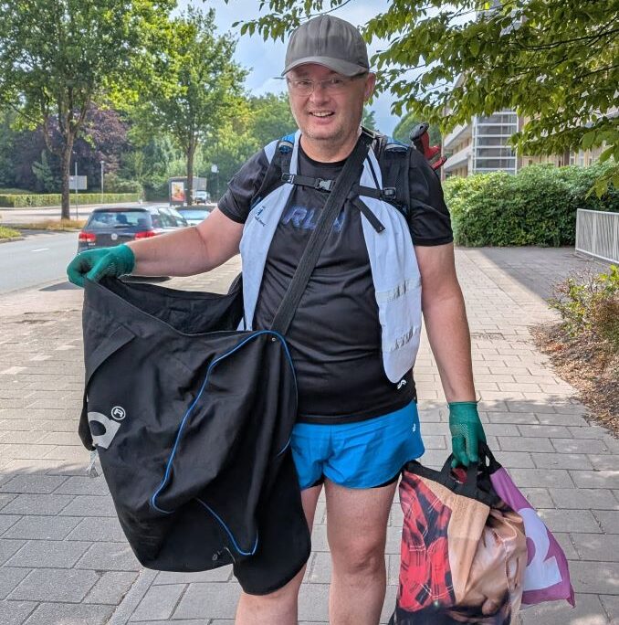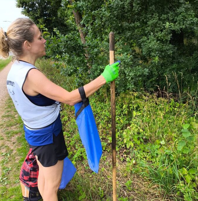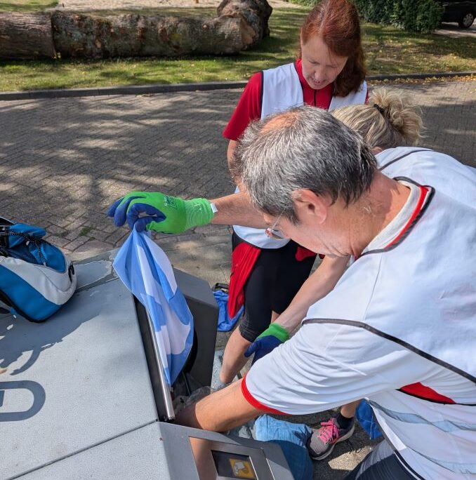 Bij De Naald kwamen de groepen elkaar weer tegen. Nadat de eerste volle plog-zakken waren verzameld (al drie grote zakken!), vervolgden de ploggers hun weg terug naar Berg en Bos via verschillende routes, waaronder de Loolaan, Bosweg en Koning Lodewijklaan. Afstanden varieerden van 6,5 tot 8,8 kilometer, allemaal binnen twee uur. Een knappe prestatie, zeker gezien het tempo én het feit dat er onderweg in totaal vijf volle zakken zwerfafval werden verzameld.