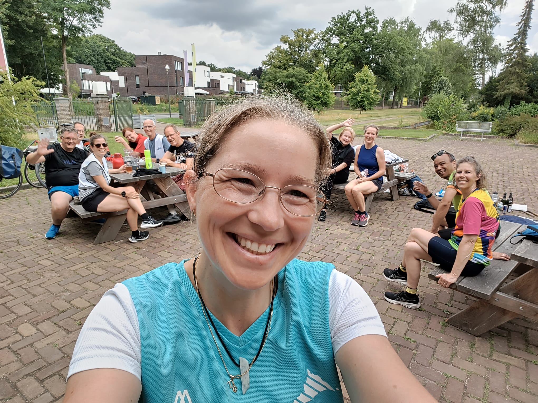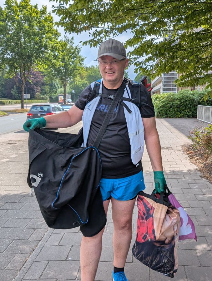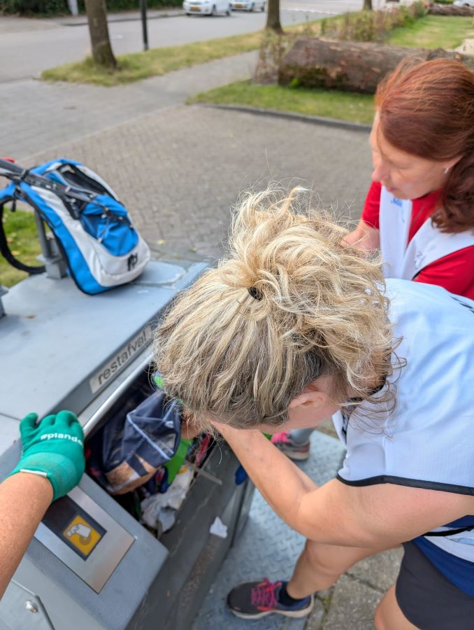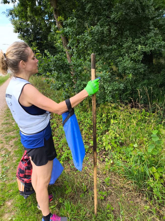 Bij De Naald kwamen de groepen elkaar weer tegen. Nadat de eerste volle plog-zakken waren verzameld (al drie grote zakken!), vervolgden de ploggers hun weg terug naar Berg en Bos via verschillende routes, waaronder de Loolaan, Bosweg en Koning Lodewijklaan. Afstanden varieerden van 6,5 tot 8,8 kilometer, allemaal binnen twee uur. Een knappe prestatie, zeker gezien het tempo én het feit dat er onderweg in totaal vijf volle zakken zwerfafval werden verzameld.
