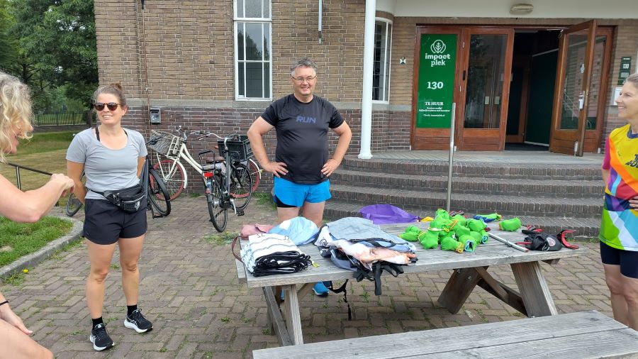 Na een korte afstemming splitste de groep zich op. De snelle lopers Karin, Janneke, Jeffrey, Herman en Hessel pakten het officiële parcours van de 8 van Apeldoorn op vanaf de JC Wilslaan. De andere ploggers – Anneke, Marij, Wilma, Jitske, Tiphaine en Michel – liepen het rondje andersom, deels samen met plandelaars Britt en Fred (die vanaf de Jachtlaan verder gingen opruimen in het gebied rondom de Belastingdienst, het Walterbosch en het Sprengenpark).