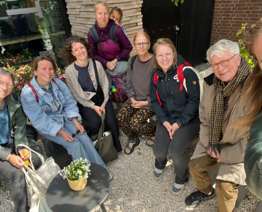 Verderop, in het bos bij Dennenheuvel, ging een groep van vijftien deelnemers op paddenstoelenwandeling met Reinier de Paddenstoelenman. Ondanks het droge weer liet hij ons kennismaken met de wonderlijke wereld van elfenbankjes, geweizwammetjes en turkey tails. Mét Zwamwijzer in de hand en een tonderzwamthee als afsluiting.