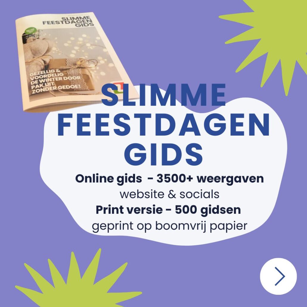 Om Apeldoorners te helpen de feestdagen afvalarm te vieren, lanceerden we de digitale Slimme Feestdagen Gids. Met praktische tips voor duurzaam versieren, geven, koken en vieren werd de gids meer dan 3.500 keer bekeken op onze website en socials.