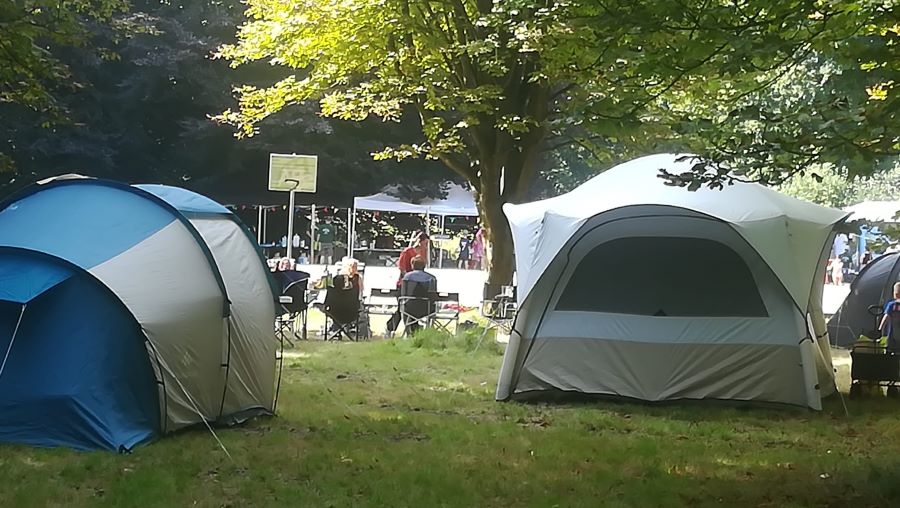 Het eerste weekend van de zomervakantie is sinds een paar jaar een heel feestelijk weekend in De Maten. Buurtbewoners kunnen komen kamperen in hun eigen wijk. Lekker dichtbij; zelfs kosteloos voor iedereen met een kleine beurs. Ook dit jaar was één van de speelweides veel vol gezet met grote en kleine tenten, en was het een heel gezellige boel.