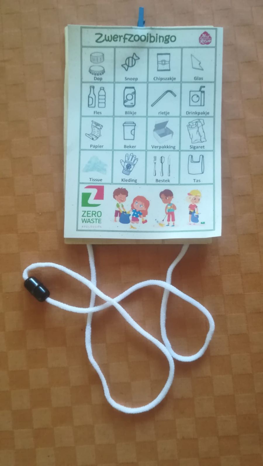 Een uurtje later was iedereen terug op de camping. Een enkeling had alle afbeeldingen kunnen afstrepen (“Hé, waar hebben jullie dan een dopje gevonden!?”), maar meestal was dat net niet gelukt. Toch had iedereen veel plastic, sigarettenpeuken en allerlei soorten verpakkingen gevonden. Met een volle bingokaart of niet: voor iedere deelnemer was er een prijsje: een handige bidon, leesboekje of ‘Heel Apeldoorn Rein’-rugzak.